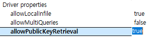 DBeaver의 MySQL 연결 설정에서 allowPublicKeyRetrieval=true 설정으로 변경